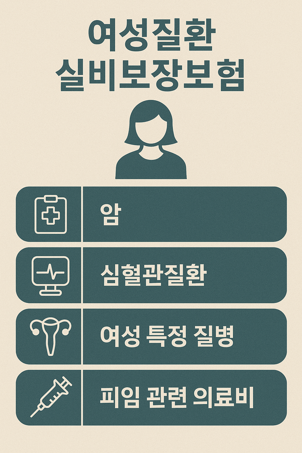 여성 질환 실비보장 보험을 고를 때는 단지 보험료만 보지 말고, 여성 질환 보장 항목, 비급여 검사 포함 여부, 자기부담금 및 보장 한도를 비교하는 것이 중요합니다.